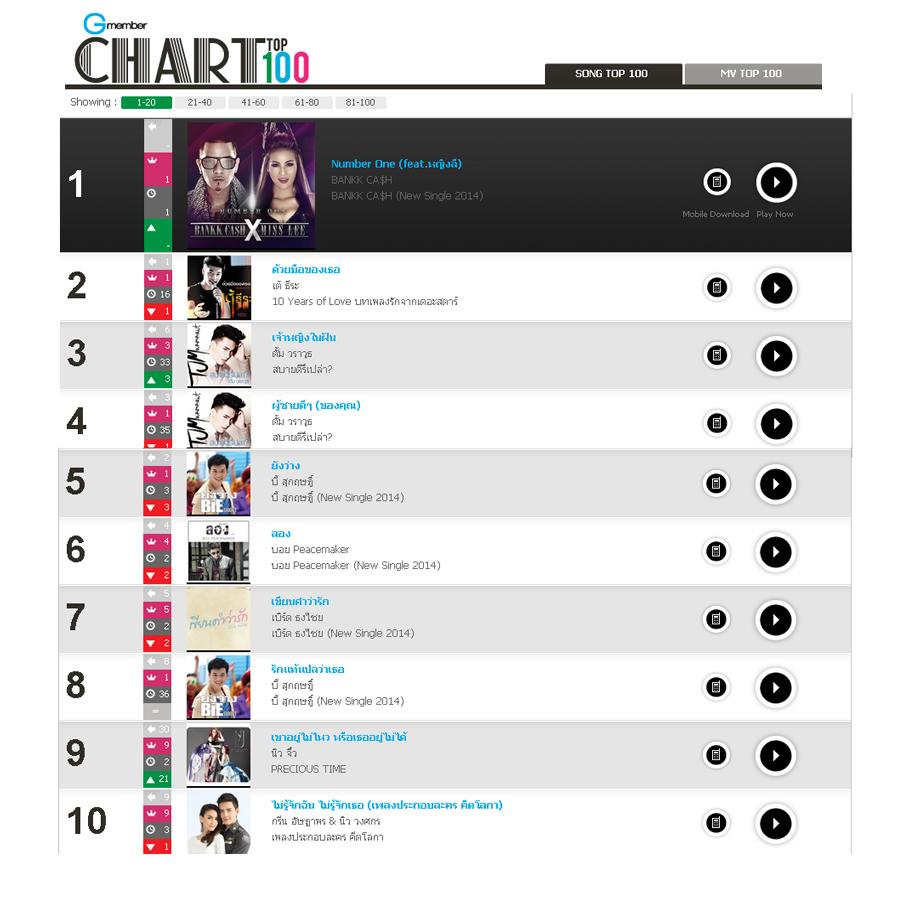 - ↑ Gmember Chart Top 100 ประจำวันที่ 29 กันยายน 2557 Dharmajati ยึดครอง เพลงใหม่เพียบ update ตรงนี้ก่อนใคร